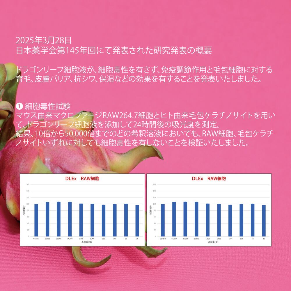 「低温真空抽出法」という特許技術を用いて、徳之島産ドラゴンフルーツの葉に含まれる水分を丸ごと絞った植物細胞液100%です。