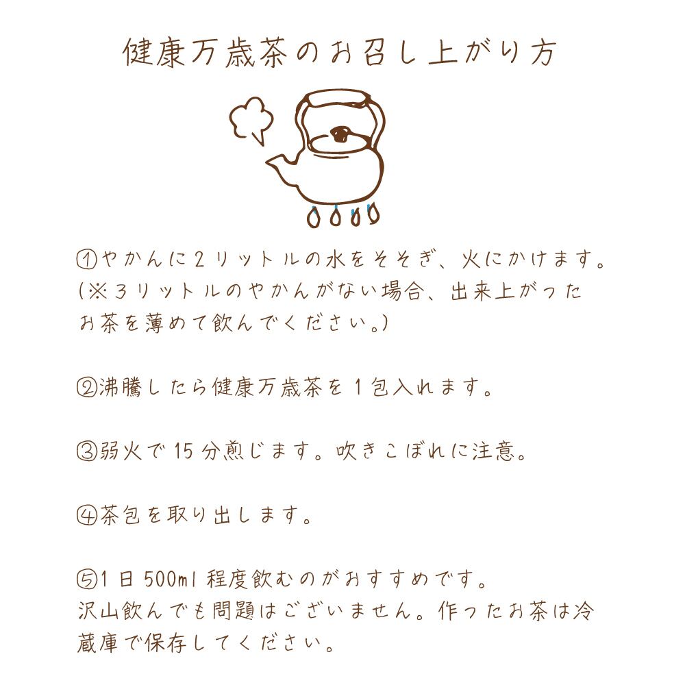 沸騰したら健康万歳茶を1包入れ、吹きこぼれに注意し、弱火で15分煎じます。