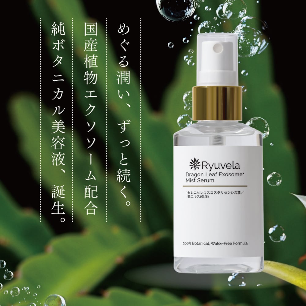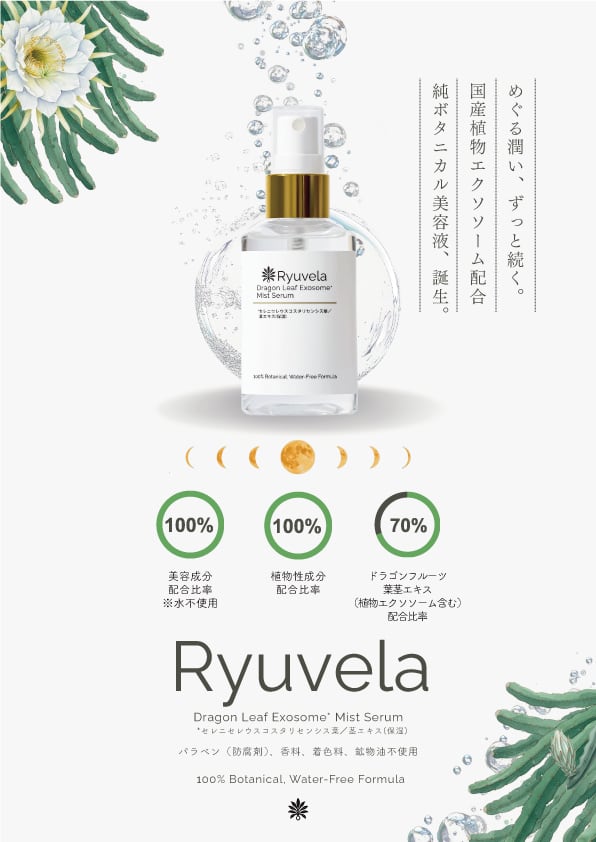 Ryuvelaは、刺激が少なく安全性の高い植物由来のエクソソームに着目し、徳之島産ドラゴンリーフ細胞液を採用しました。
