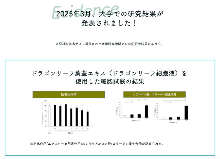 2025年3月には、大学研究機関との共同研究により、美容効果のエビデンスが発表されています。