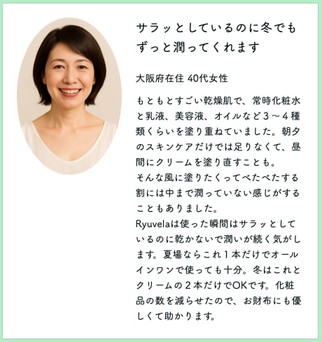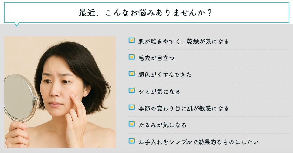 肌にやさしく、けれどパワフルに。40代以上のエイジング世代でも、お肌の土台からの潤いの巡りを実感できます。