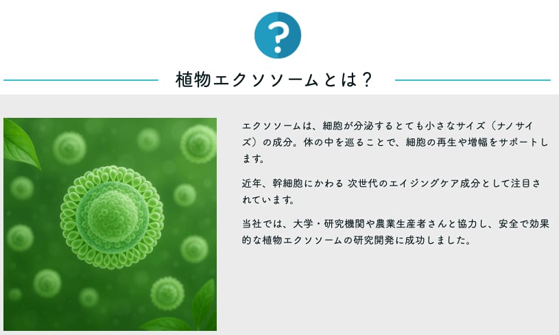 細胞間の情報伝達を担い細胞再生のカギとなる「エクソソーム」は、近年、医療や美容分野で注目を集める最先端の次世代美容成分。