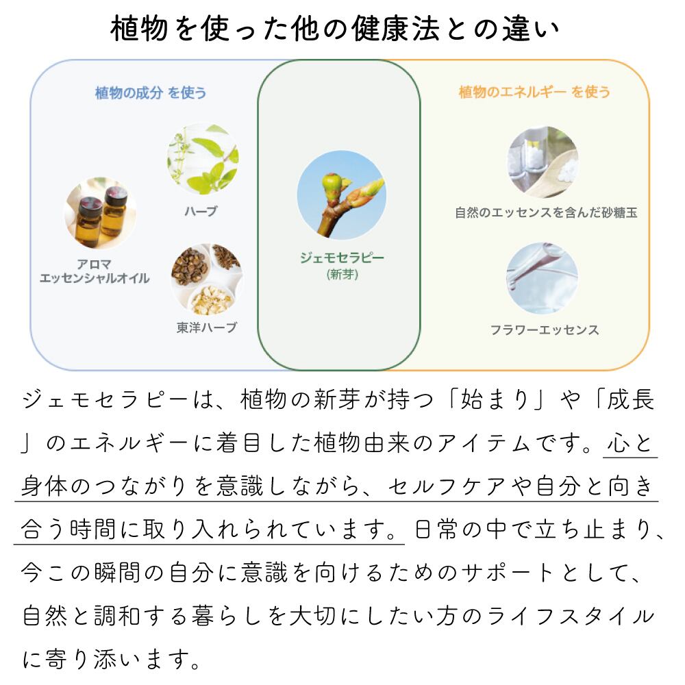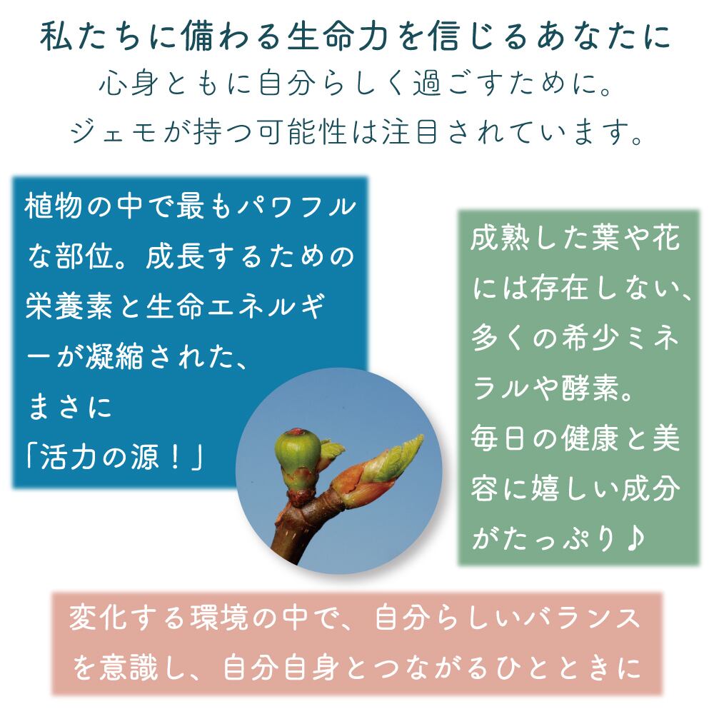 ジェモセラピーは発酵エキスが基剤のため、賞味期限に関わらず開封後4年以上保管ができ、美味しく安心してお召し上がり頂けます。