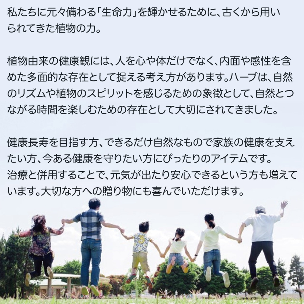 サプリメント のように飲み続ける必要がなく、整ったと感じたら飲むのをやめて頂いてかまいません。ハーブの本場フランス発の暮らしに役出つ セルフケア 。できるだけ自然にケアしたい・根本ケアに興味がある方にも、自信を持ってオススメする新しい 健康食品 です。