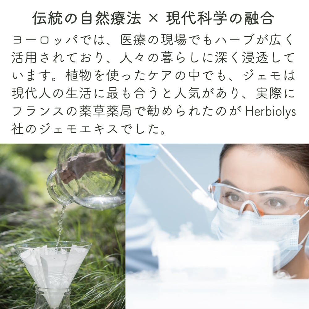 ジェモセラピーは発酵エキスが基剤のため、賞味期限に関わらず開封後4年以上保管ができ、美味しく安心してお召し上がり頂けます。