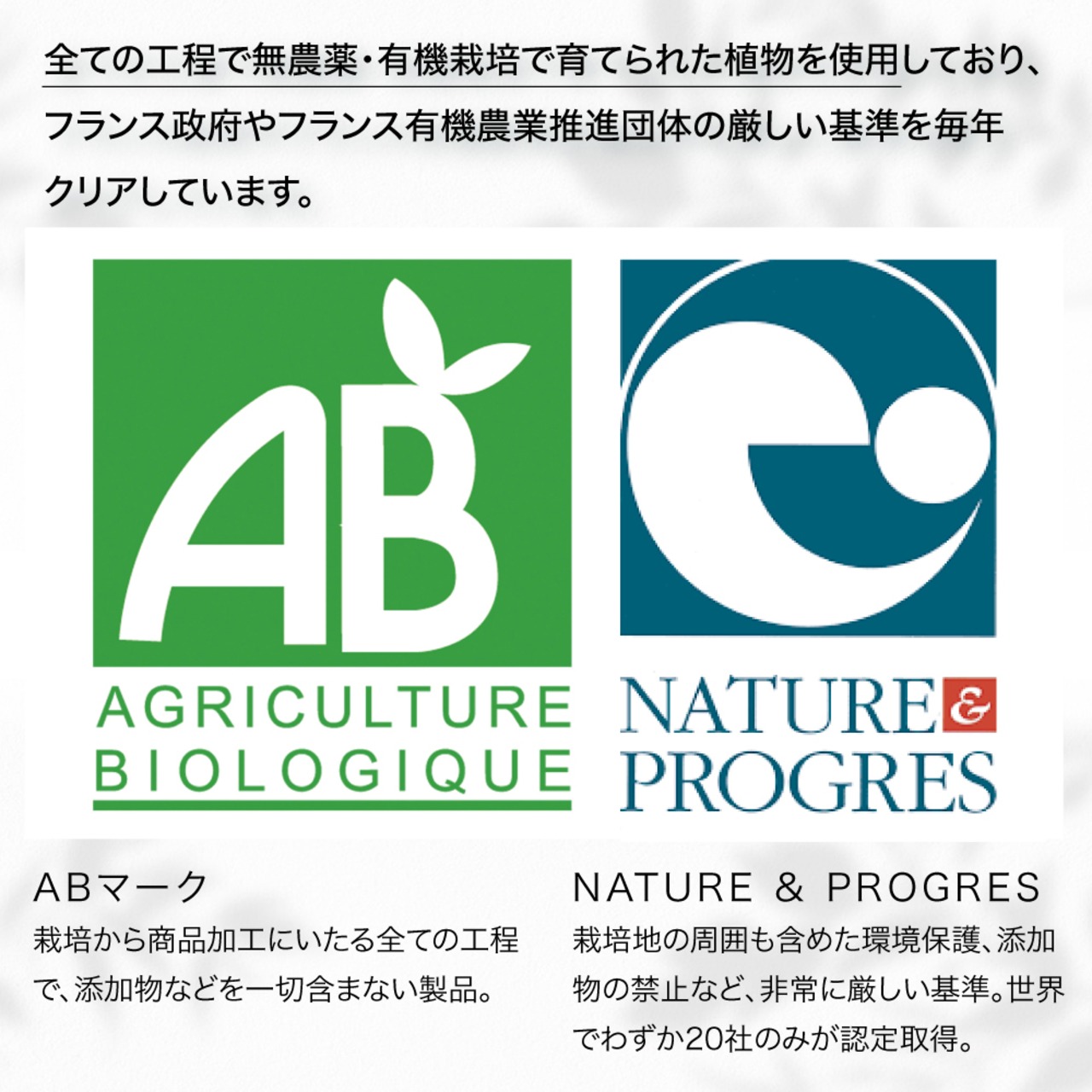 【原材料】植物性グリセリン、鉱泉水、有機穀類アルコール、有機ギンコー新芽、自然塩