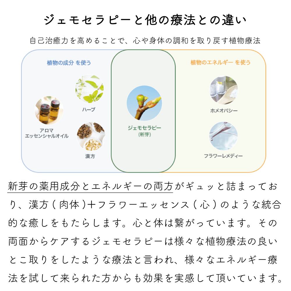 ※ ジェモセラピー は、 サプリメント のように飲み続ける必要がなく、症状が治まれば飲むのをやめて頂いてかまいません。