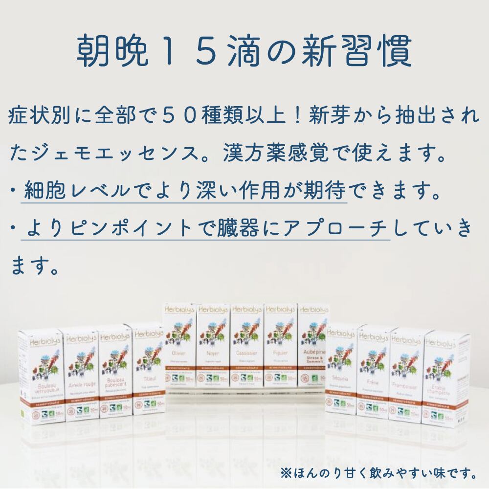 ◆〈伝統的な植物の叡智×先端植物研究〉ジェモセラピーは、サプリメントのように飲み続ける必要がなく、整ったと感じたら飲むのをやめて頂いてかまいません。できるだけお薬に頼りたくない方、根本ケアに興味がある方にも。ハーブの本場フランスから届いた暮らしに役出つセルフケアアイテムであり、自信を持っておすすめする新しい健康食品です。