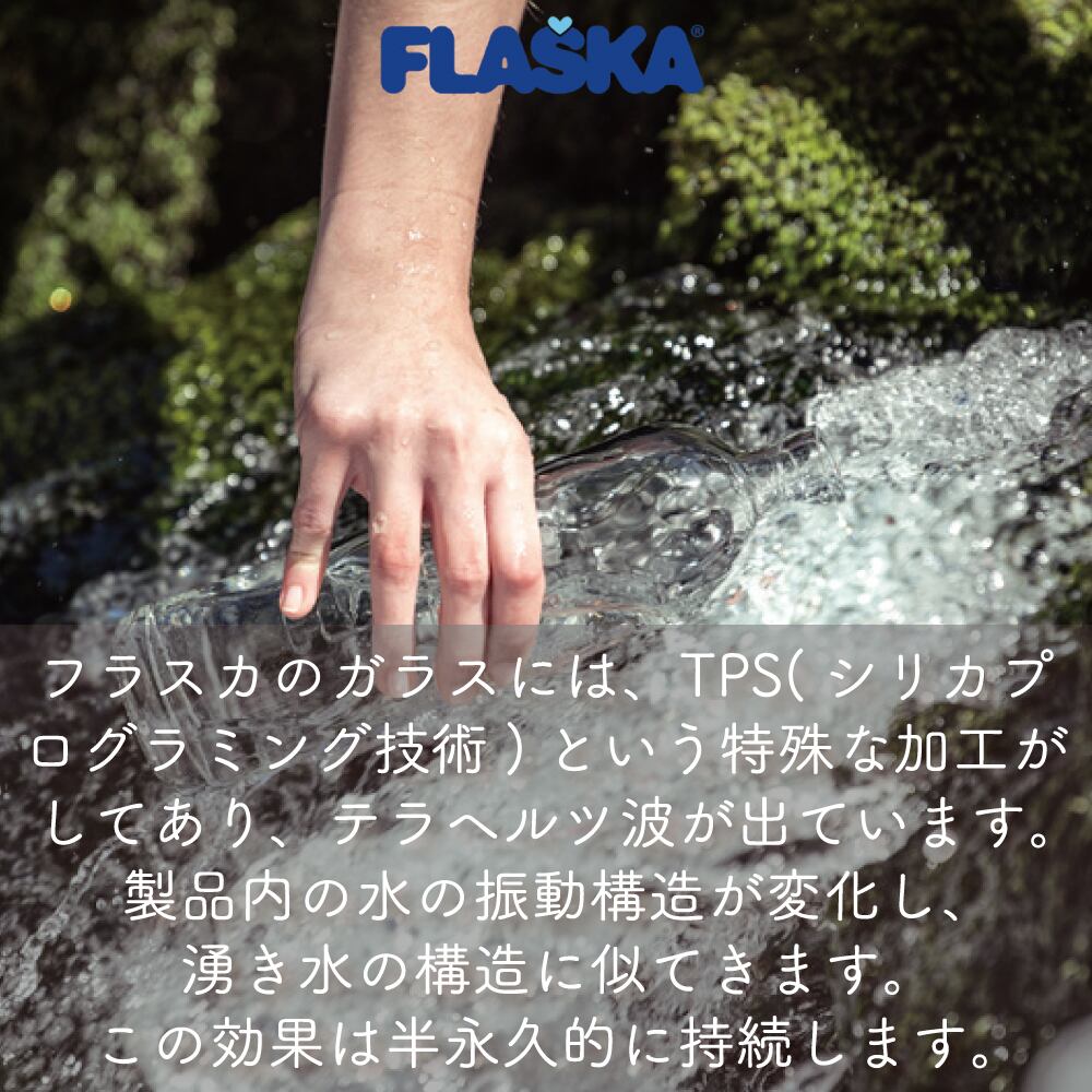 ●水を入れると、テラヘルツ波の力により、天然の湧水のようなエネルギーの高い水に変化します。この効果は半永久的に持続します。